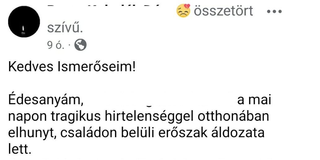 a nő lánya közösségi oldalán osztotta meg a hírt, amely szerint édesanyja családon belüli erőszak áldozata lett.