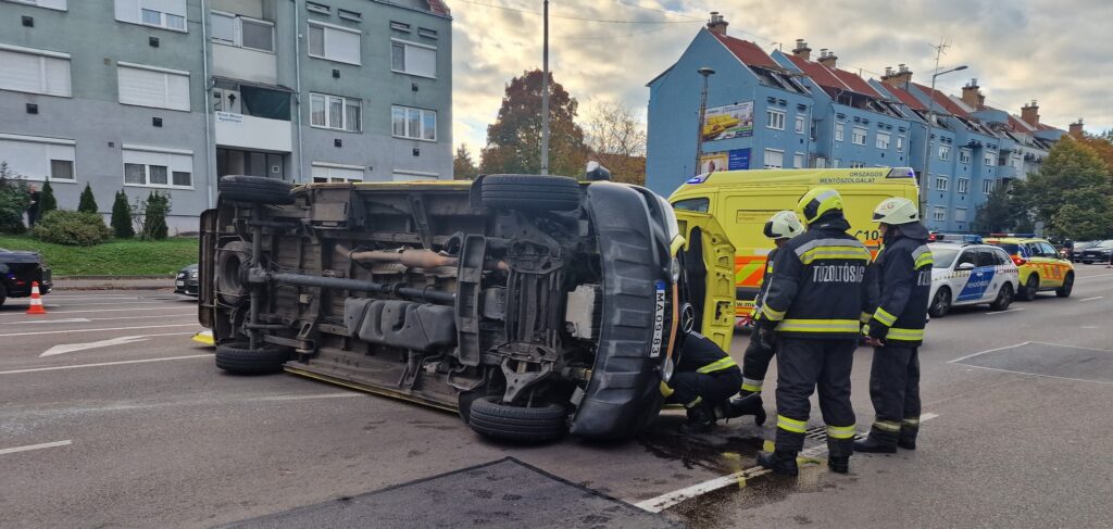 Felborult egy mentőautó a Szvorényi úton: kiderült, mi történt pontosan – GALÉRIA