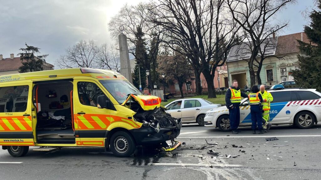 Mentőautó és platós kisteherautó karambolozott Egerben